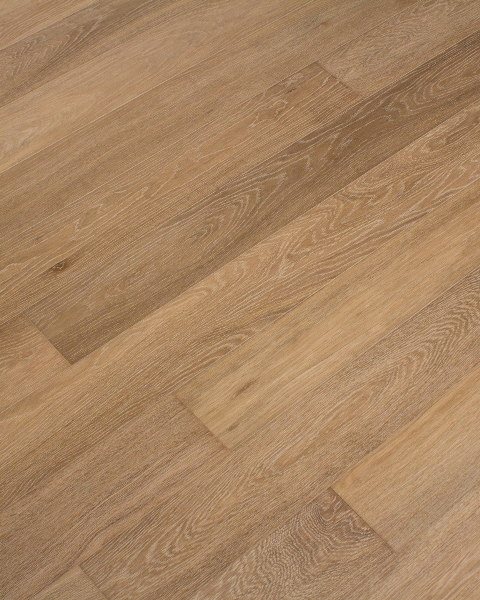 Инженерная доска Wood Bee Дуб Вайт (White) выглядит очень нежно и элегантно. Преобладающие оттенки в её палитре: бежевый и светло-коричневый. На этом фоне ярко переливается интенсивная сетка древесного декора. Волокна, формирующие узор, чуть темнее поверхности, поэтому они не создают слишком кричащий контраст. Столь спокойное и нейтральное напольное покрытие дарит помещению истинный уют и расслабляющую атмосферу. Прованс, кантри и рустик, основанные на натуральности используемых материалов, гармоничны на этой базе. Инженерная доска Wood Bee Дуб Вайт (White) прошла технику браширования, то есть вычищения мягких волокон жесткими щетками, обеспечила рельефность декора. УФ-лак, мгновенно отвердевший при ультрафиолетовом излучении, защищает поверхность и придает её умеренный блеск (10%).