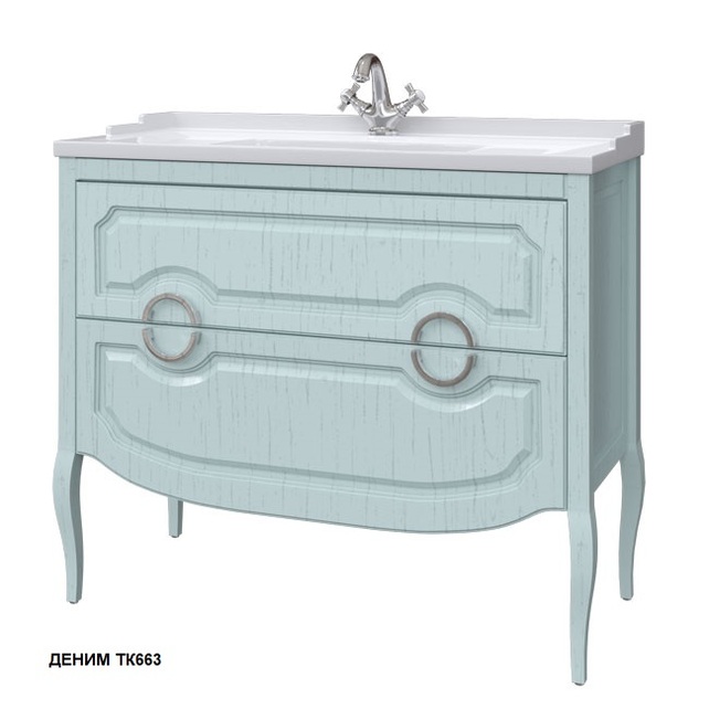Напольная тумба с раковиной FIRENZE 100 см шириной производится под заказ в любых отделках "SOFTTOUCH" из реестра отделок CONCEPT. Оснащена двумя выдвижными ящиками. Фаянсовая раковина продается отдельно.