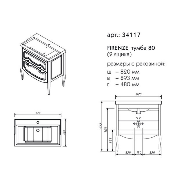 - Габаритные размеры тумба + раковина, ш/г/в, в см: 82/ 48/ 89,3
