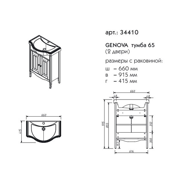 - Габаритные размеры тумба + раковина, ш/г/в, в см: 66/ 41,5/ 91,5