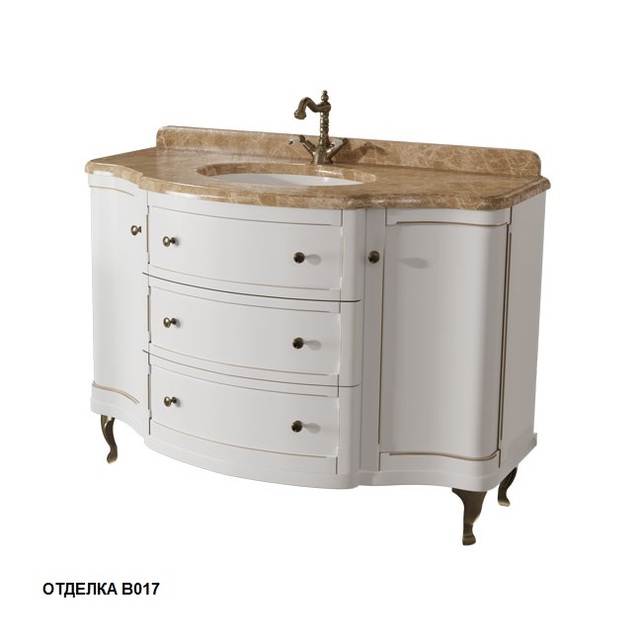 Тумба Imperio 120 с раковиной и столешницей для ванной комнаты изговлена из массива дуба, цена указана на стандартные отделки.Боковые фасады тумбы в виде филенок. В комплекте два выдвижных ящика и врезная фаянсовая раковина. Возможна отделка золотой/серебрянной поталью. Толщина столешницы 20 и 30 мм, материалы мрамор, агломерат и кварц в различных цветах. Цену можно уточнить у менеджеров по телефону или почте.