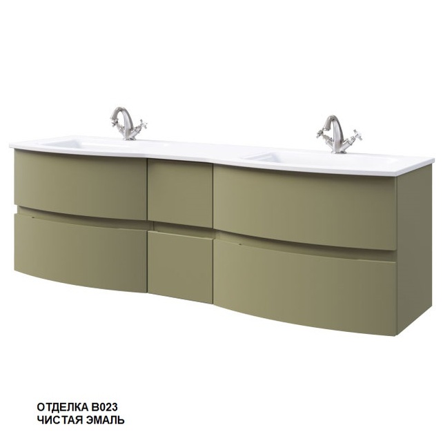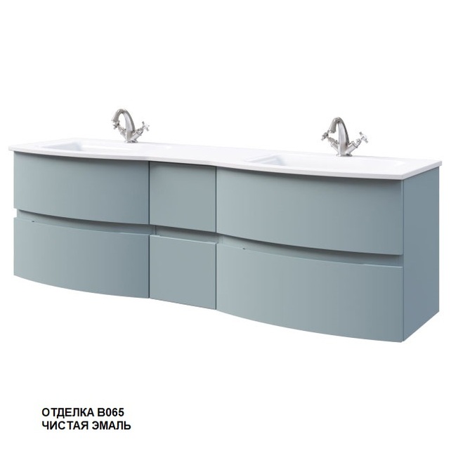 Данное решение значительно расширяет применимость коллекции в интерьерах любого размера и стиля. Составленный из модулей комплект сверху накрывается моноблочной Стекло-Керамической раковиной, изготовленной под конкретный заказ.