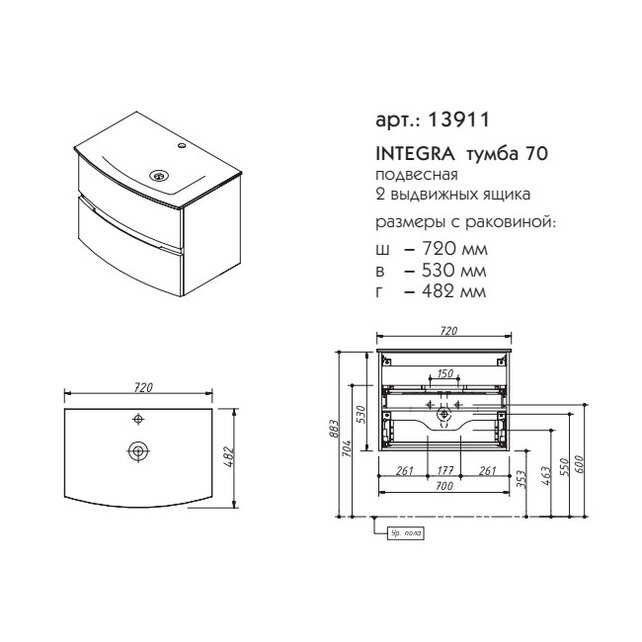 INTEGRA тумба 70 выпускается в отделках: категория ЭМАЛИ – SPECIAL ENAMEL category реестра отделок "CLASSIC" раковина (стеклокерамика)