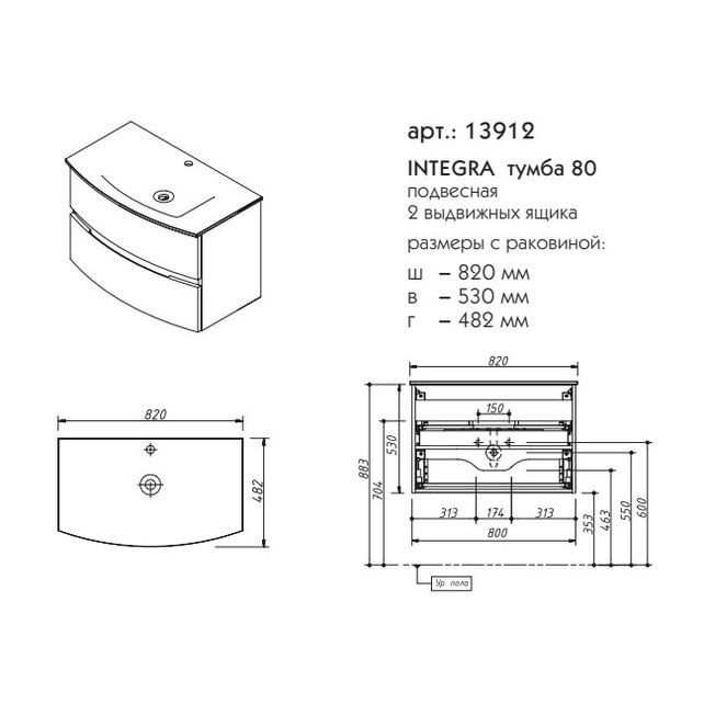 INTEGRA тумба 80 выпускается в отделках: категория ЭМАЛИ – SPECIAL ENAMEL category реестра отделок "CLASSIC" раковина (стеклокерамика)