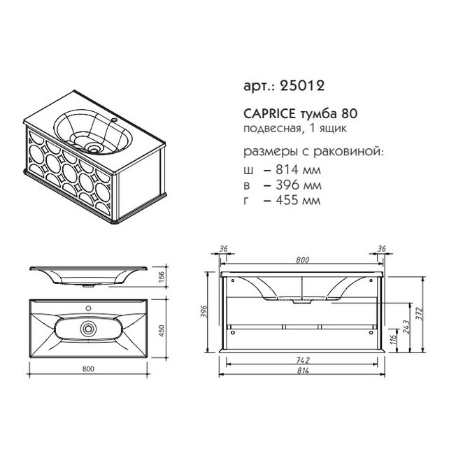 Тумба CAPRICE 80 производится только в отделках цветными эмалями без патинирования, двуцветие (круги) один выдвижной ящик раковина литьевой мрамор. возможная комплектация раковиной (стеклокерамика)55860 раковины приобретаются отдельно