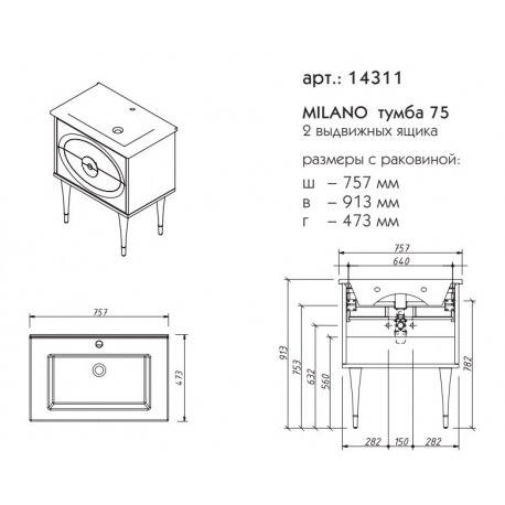 MILANO тумба 75 см выпускается в отделках: чистые эмали категория ЭМАЛИ – SPECIAL ENAMEL category реестра отделок CLASSIC раковина (фаянс) продается отдельно