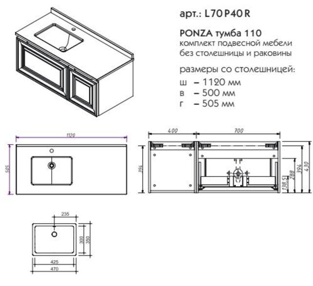 ■ Модули L(с раковиной), P(с дверкой), и C(с ящиком) коллекции PONZA можно собирать в комплекты в произвольном порядке.