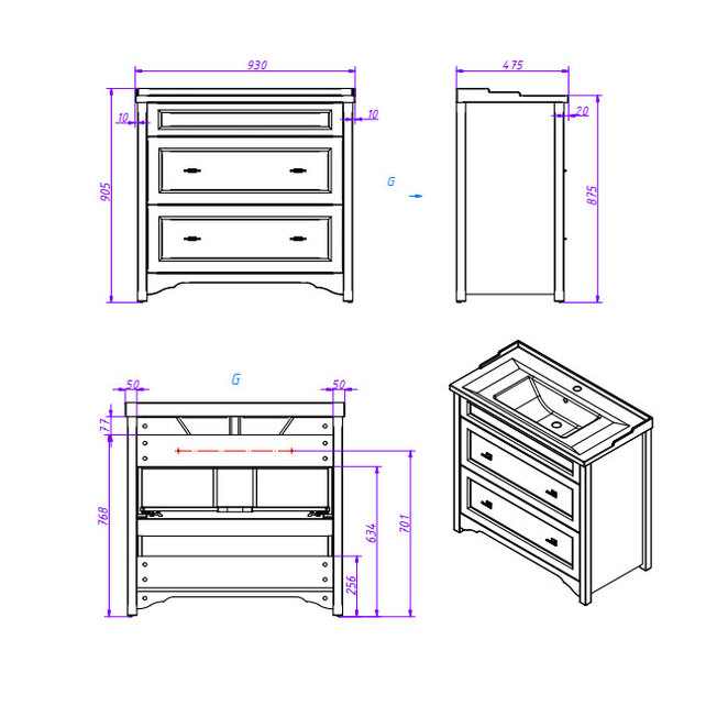 - Габаритные размеры тумба + раковина, ш/г/в, в см: 93/47,5/90,5