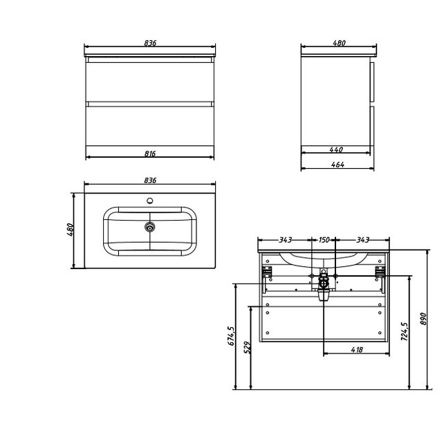 - Габаритные размеры тумба + стеклянная раковина, ш/г/в, в см: 83,6/48/58,4