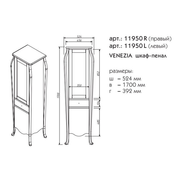 - Габаритные размеры изделия, ш/г/в, в см: 52,4/ 39,2/ 170
