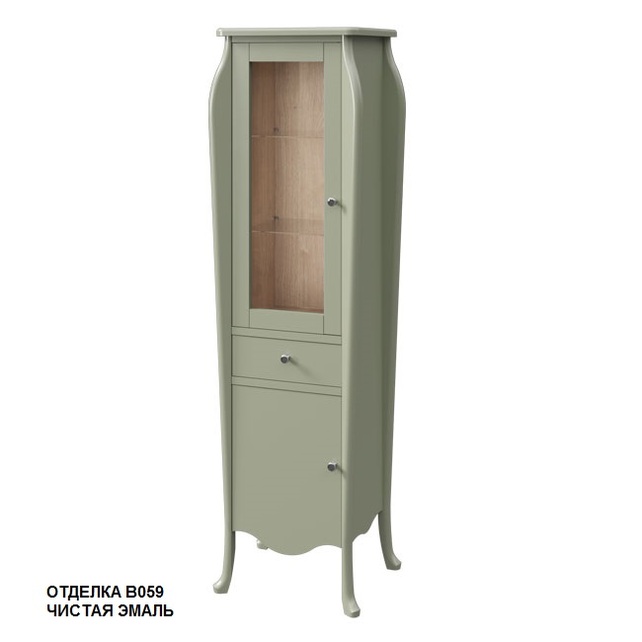 VENEZIA шкаф–пенал верхний фасад со стеклом выпускается в отделках из Реестра отделок CLASSIC без патинирования один выдвижной ящик; три стеклянные полки