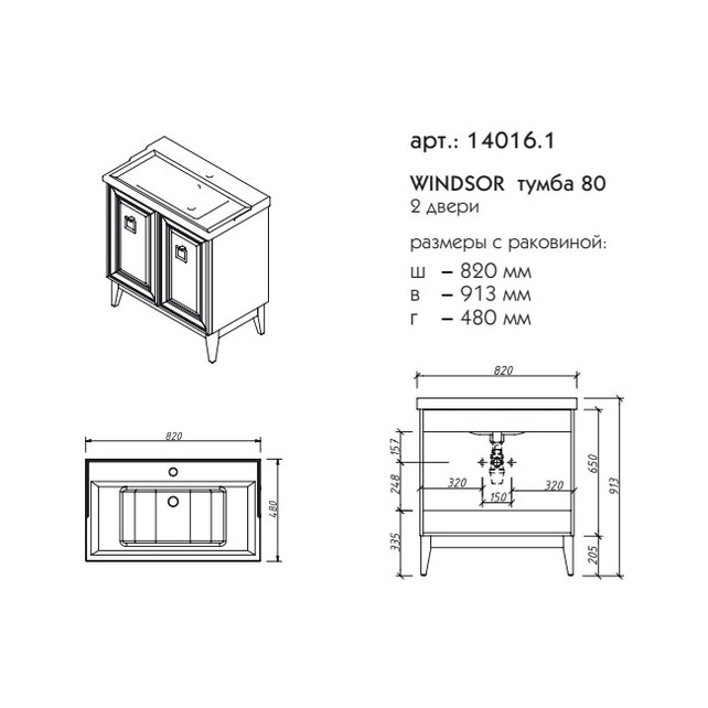- Габаритные размеры тумба + раковина, ш/г/в, в см: 82/48/91,3