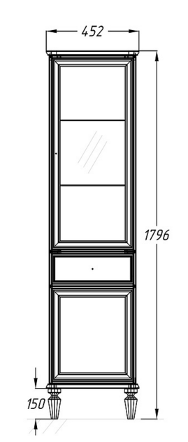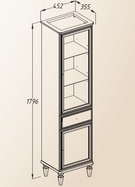Пенал Opadiris Санрайз в классическом дизайне из массива бука, выполнен в цвете слоновой кости и оформлен матовым стеклом. Прямоугольная конструкция изделия на изящных фигурных ножках предусматривает сверху и снизу декоративный ступенчатый плинтус, который переплетается по стилистике с обработкой рамных фасадов. Функциональные зоны пенала представлены двумя отделениями с полками и одним выдвижным ящиком. Возможно исполнение в левостороннем и правостороннем виде, необходимый вариант нужно уточнить при заказе.