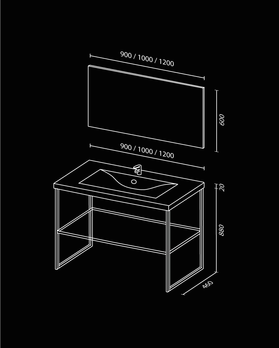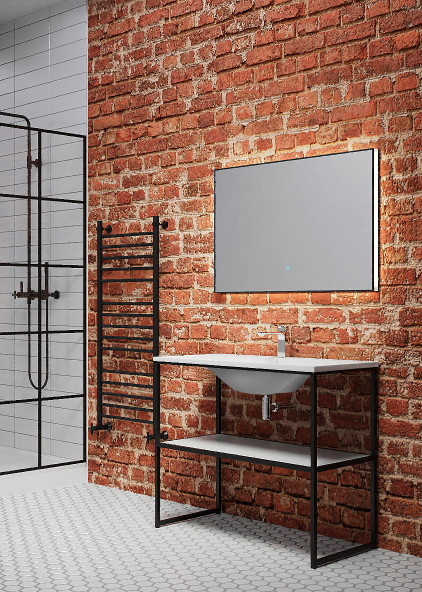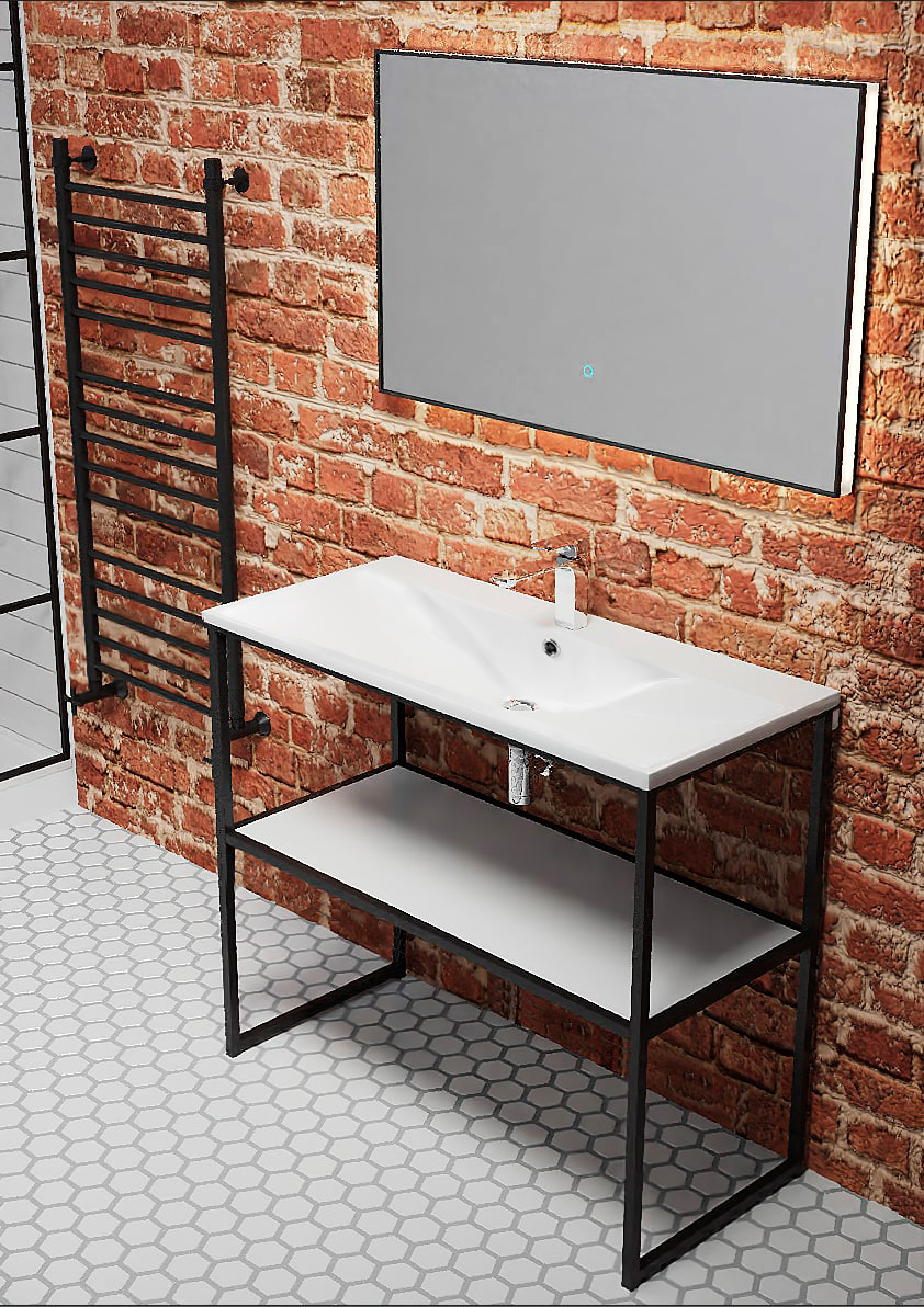 Коллекция мебели Бостон предназначена для любителей стиля Лофт. Каркас тумбы выполнен из стального профиля окрашенный черной порошковой краской. Нижняя часть тумбы оснащена полкой, которая может быть выполнена как из ЛДСП компании EGGER, так и из стекла (6мм). Тумба укомплектована керамической раковиной, которая также входит в стоимость комплекта.