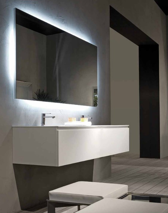 Имеет хорошую эргономику за счет глубины тумбы и скрытого ящика-органайзера, в котором разделение пространства для ванных принадлежностей и аксессуаров.