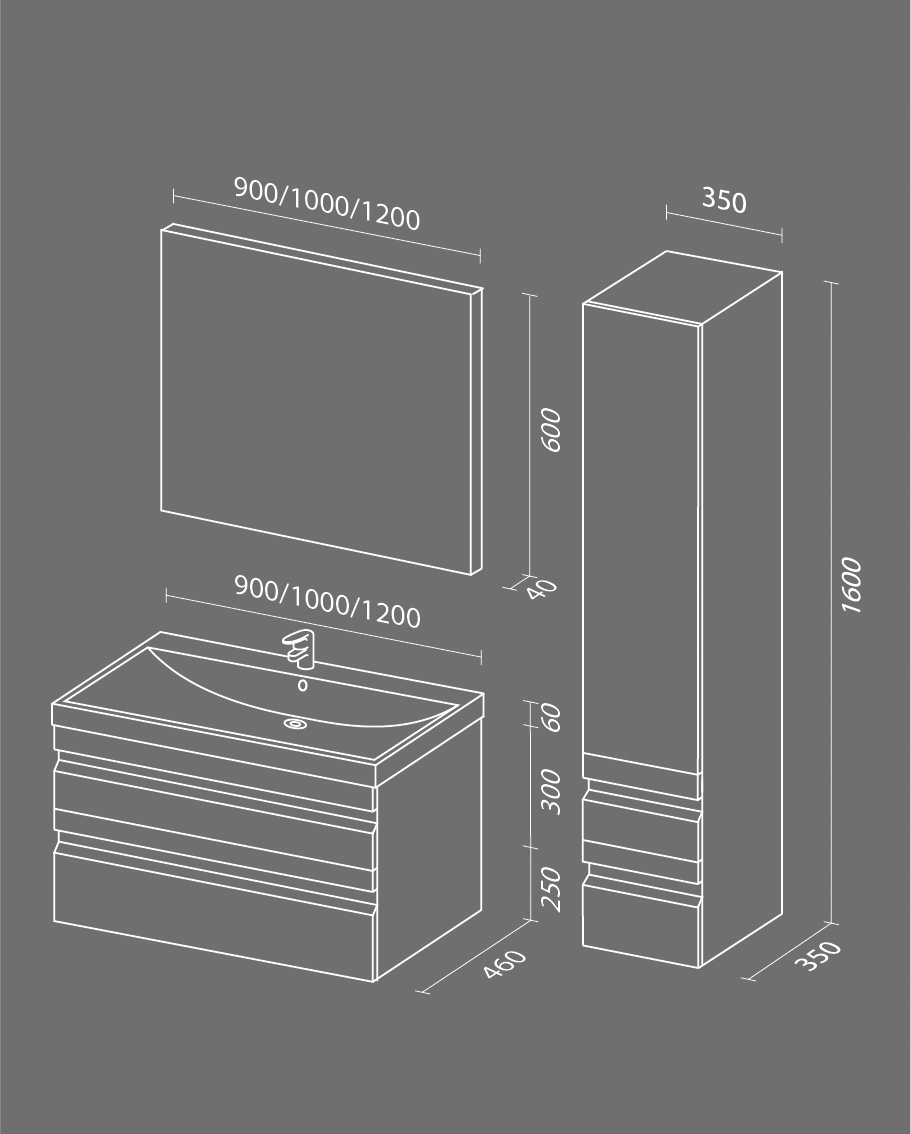 В цену комплекта входит керамическая раковина. Мебель изготовлена из влагостойкого МДФ.