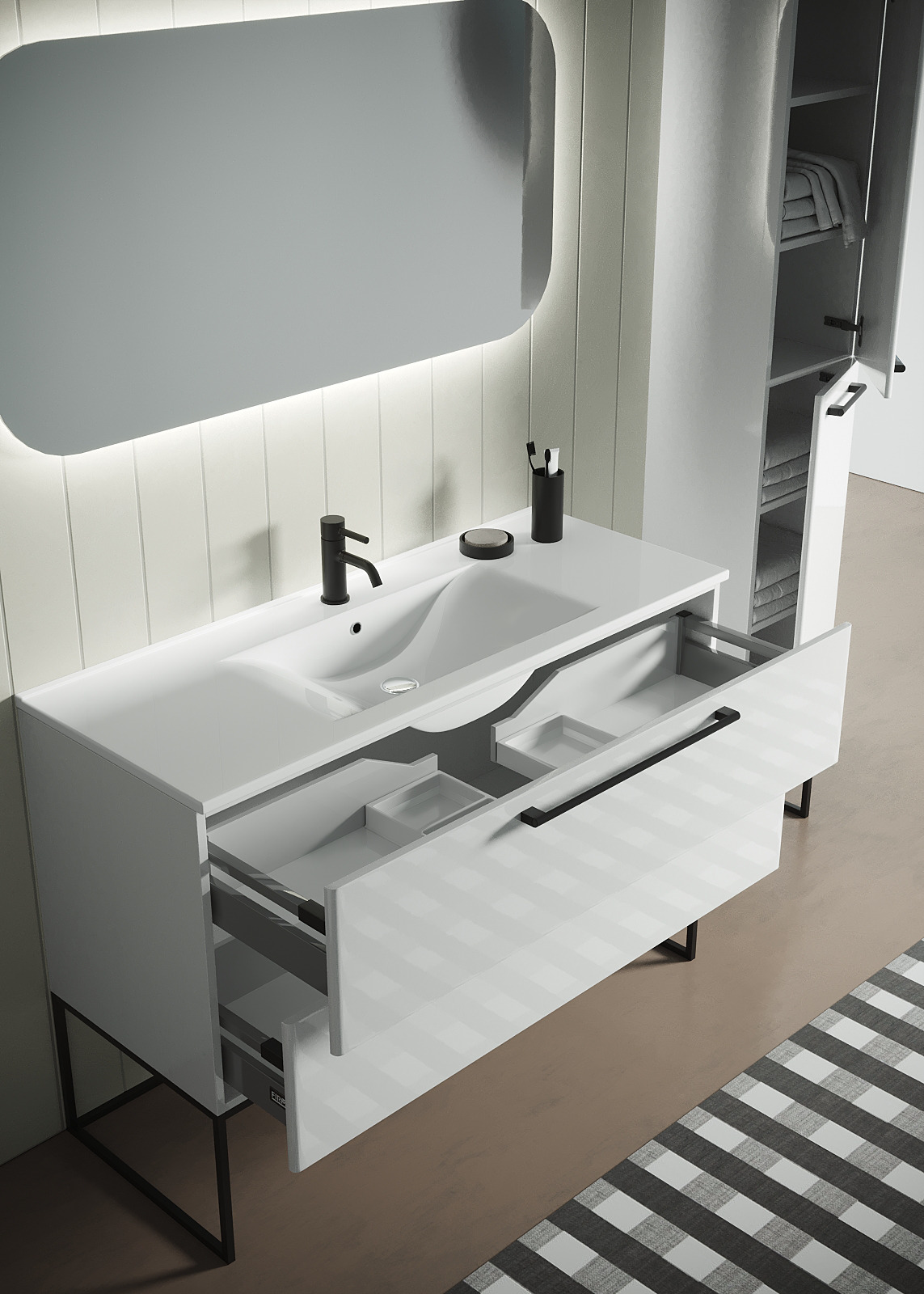 Модель выполнена в современном стиле и оснащена двумя выдвижными ящиками с функцией полного выдвижения и плавного, бесшумного закрывания. Раковина – керамическая. Модель производится в плёнке ПВХ. Помимо стандартной цветовой гаммы возможно исполнение в пленке ВДМ-Групп, ЕвроГрупп. Размеры указаны с учетом раковины. Мебель комплектуется керамической раковиной SanVit.
