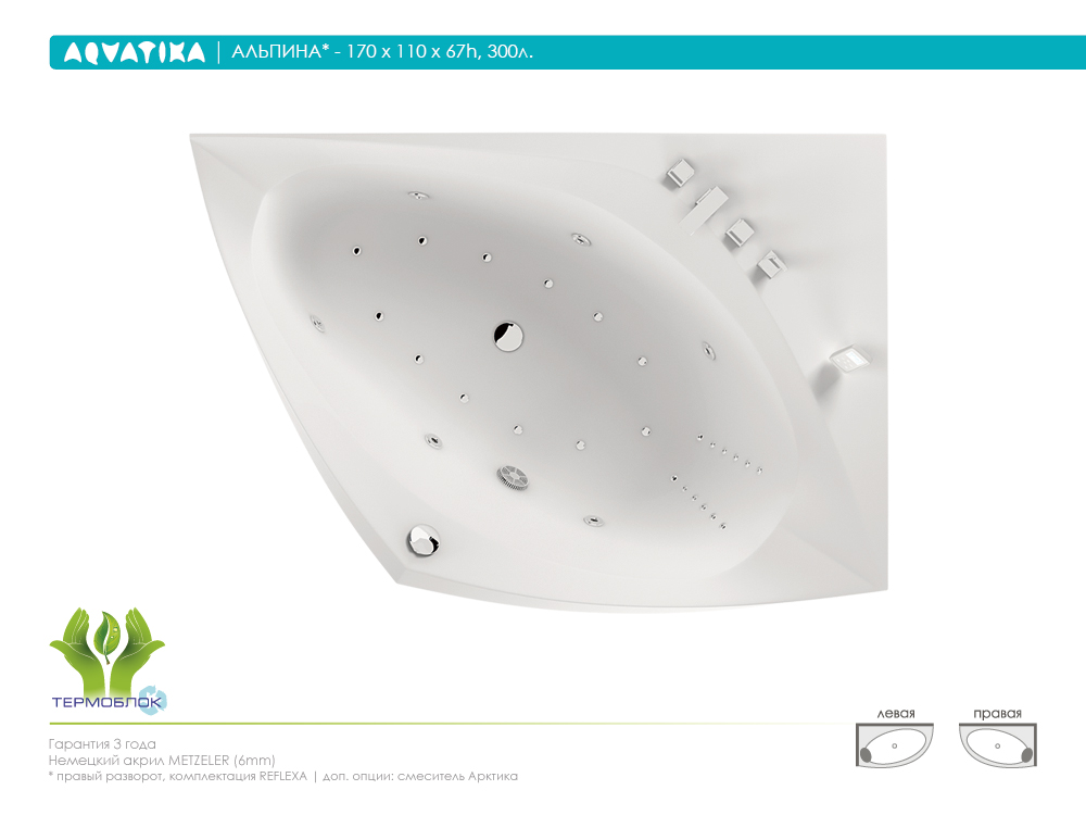 Важно! Вариант ванны правая или левая необходимо указывать при заказе. Разворот ванны Акватика определяет по голове, если подходить со стороны фронтального экрана.