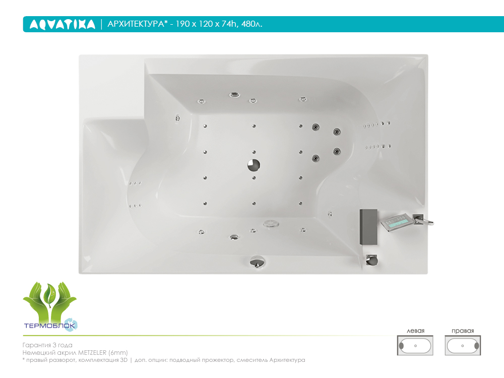 Важно! Вариант ванны правая или левая необходимо указывать при заказе. Разворот ванны Акватика определяет по голове, если подходить со стороны фронтального экрана.
