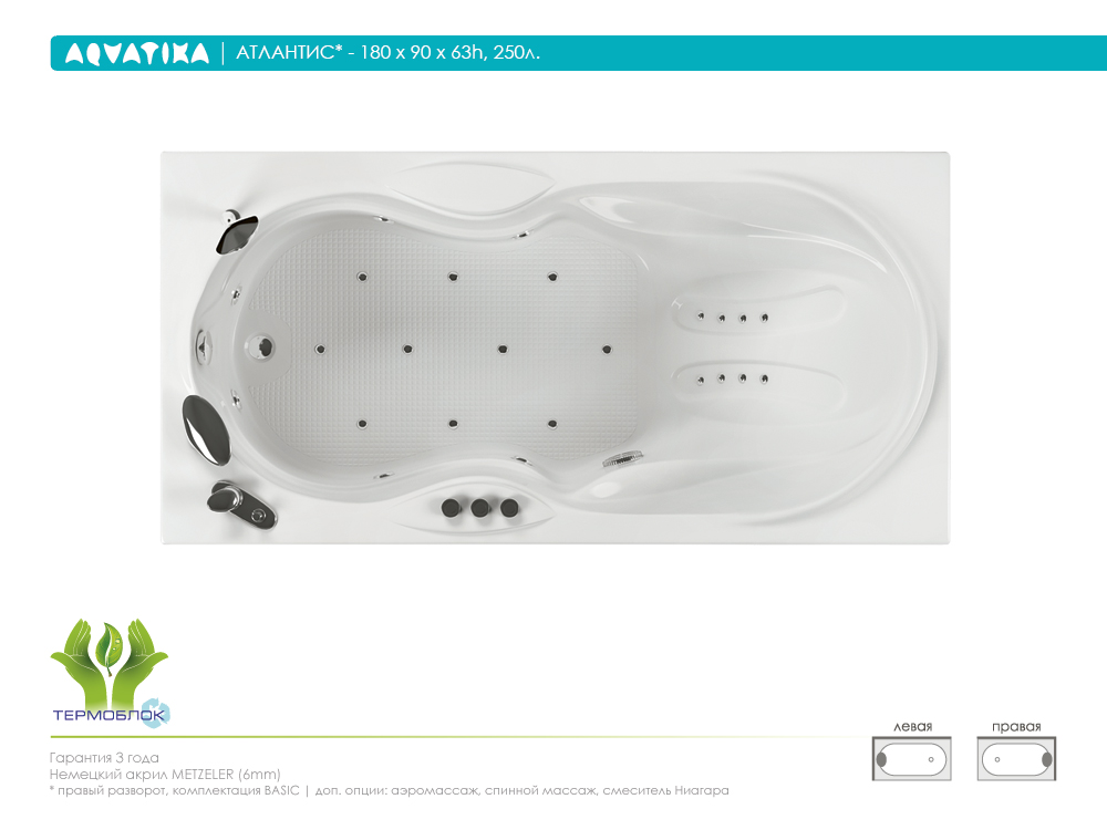 Важно! Вариант ванны правая или левая необходимо указывать при заказе. Разворот ванны Акватика определяет по голове, если подходить со стороны фронтального экрана.