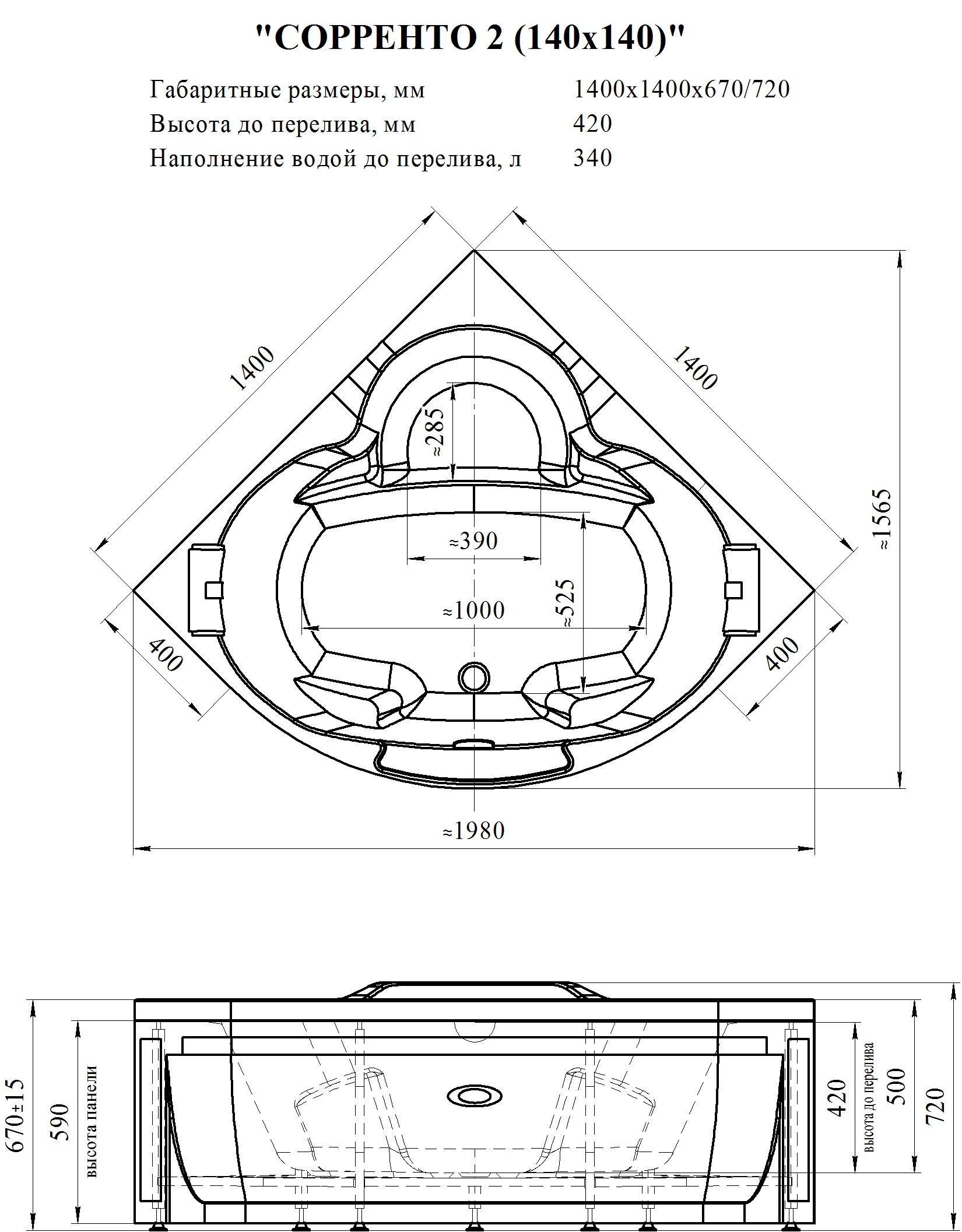 Акриловая ванна "Сорренто" 140х140 подходит тем, кто хочет получить широкое и функциональное внутреннее пространство. Она способна стать романтическим уголком для пары, спа-пространством для любителей понежиться в пене и настоящим мини-бассейном для детей. Большой внутренний объем делает ванну универсальной для людей любого роста и комплекции. Угловая ванна "Сорренто" в варианте с гидромассажем понравится всем, кто любит спокойный, размеренный отдых с пользой для тела и здоровья. Теплая, массирующая вода быстро снимет стресс и запустит процесс восстановления.