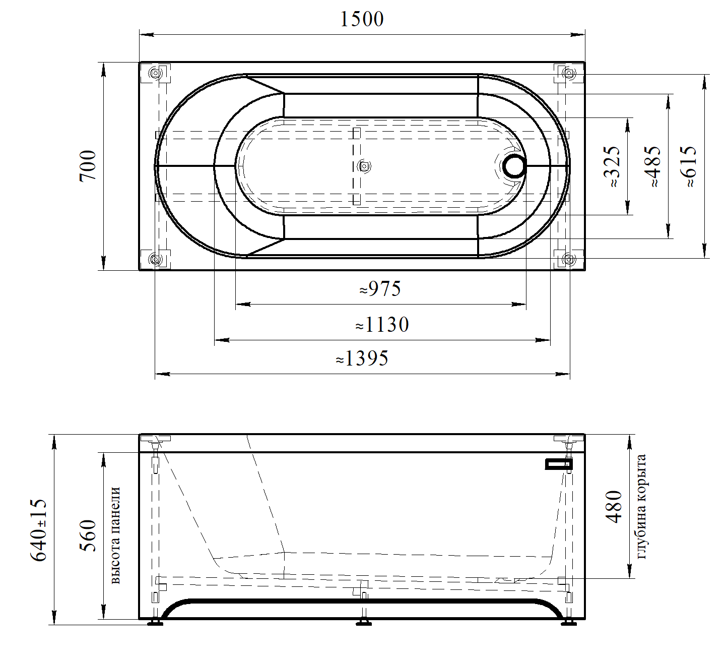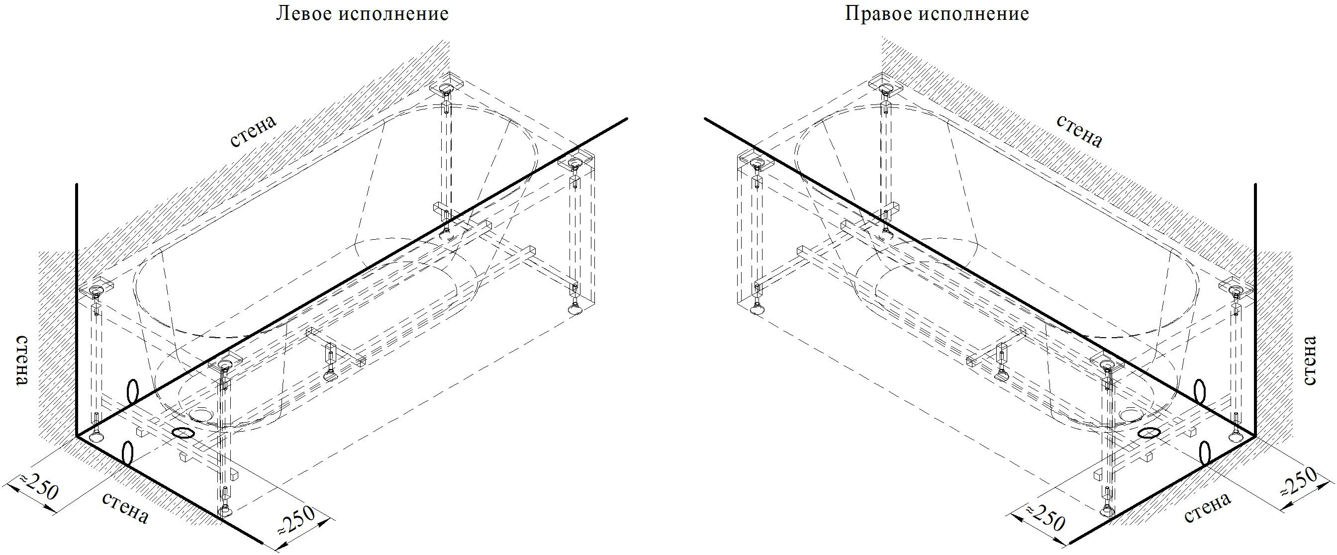 ОСНОВНОЙ КОМПЛЕКТ (Чаша ванны левая, Опорная рама левая, Слив-перелив (с сифоном))