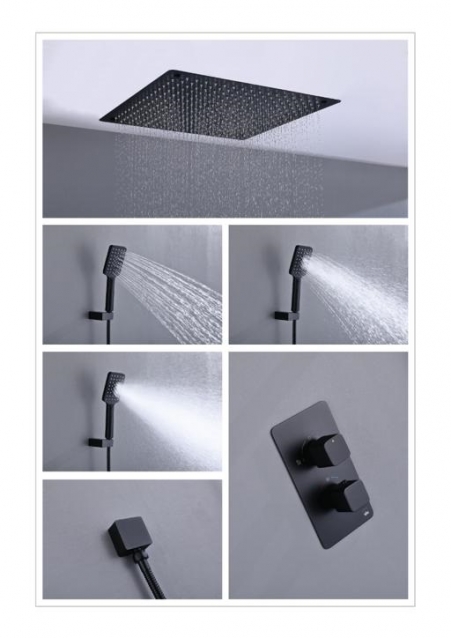 - Душевая система скрытого монтажа, с термостатом с квадратной лейкой (латунь) в стиле модерн
