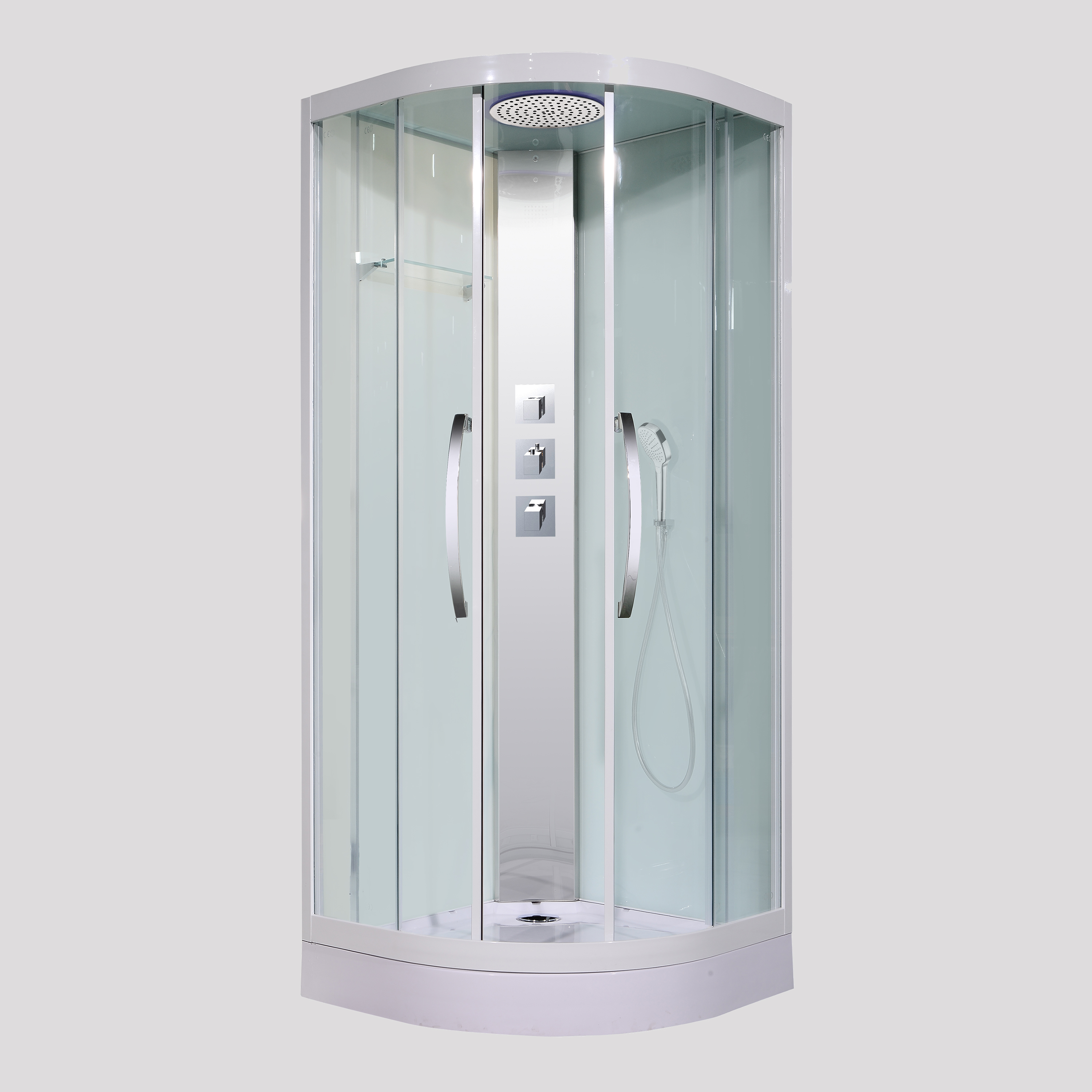 Верхний душ в душевой кабине Lagard Lira F 90 сделан из металла, а сопла изготовлены таким образом, что повторяют размер и форму капель дождя. Также верхний душ оборудован опцией «Quick Clean» для быстрой очистки.