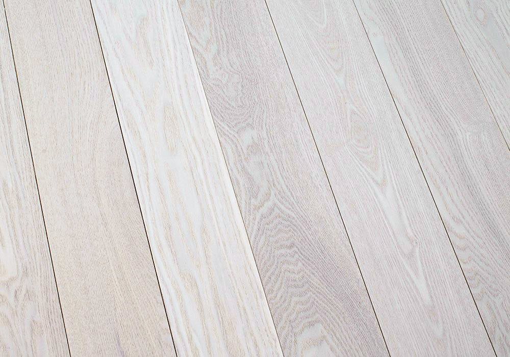 Инженерная доска Wood Bee Ясень Мунлайт внешне по цветовым обработкам похожа на дуб, единственное отличие в текстуре. Причудливые узоры ясеня никогда не повторяются и ни с чем невозможно спутать. При создании данной модели использовалась тонировка поверхности, а затем ее покрыли белым маслом. Напольное покрытие оснащено системой замкового соединения, что позволяет осуществлять монтаж плавающим способом или приклеиванием на основание. Также такой материал совместим с системой «теплый пол».