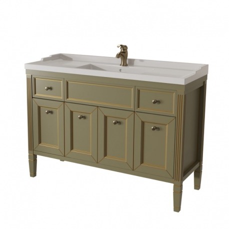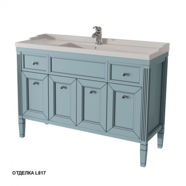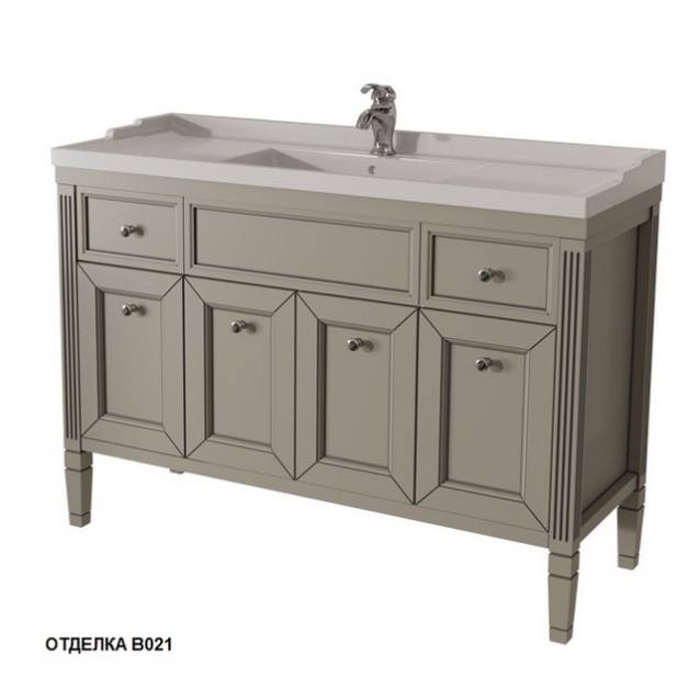 Удивительной красоты тумба под раковину из коллекции Альбион выполнена в классическом стиле. Во внешнем виде изделия четко прослеживается сдержанный аристократизм и четкость линий. Кроме превосходного внешнего вида модель отличается высокой функциональностью, так как имеет несколько выдвижных ящиков и вместительных отделений с распашными дверцами.