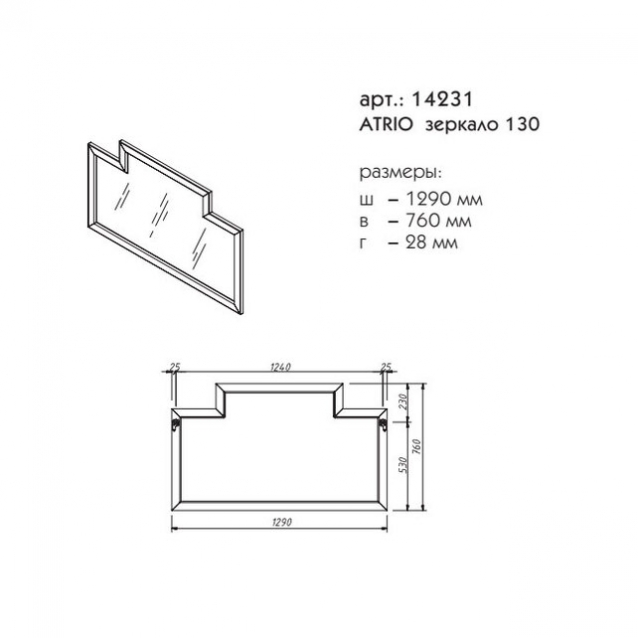 - Габаритные размеры изделия, ш/г/в, в см: 129/ 2,8/ 76
