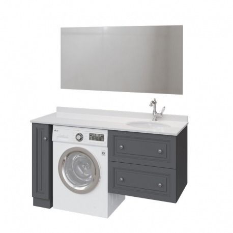 Главная особенность коллекции - конструкция по вашему индивидуальному размеру. У нее могут быть узкие, но функциональные шкафчики, пространство тдля стиральной машины и втроекнная раковина, свижвижными ящиками под ней или полочками классического шкафа.
