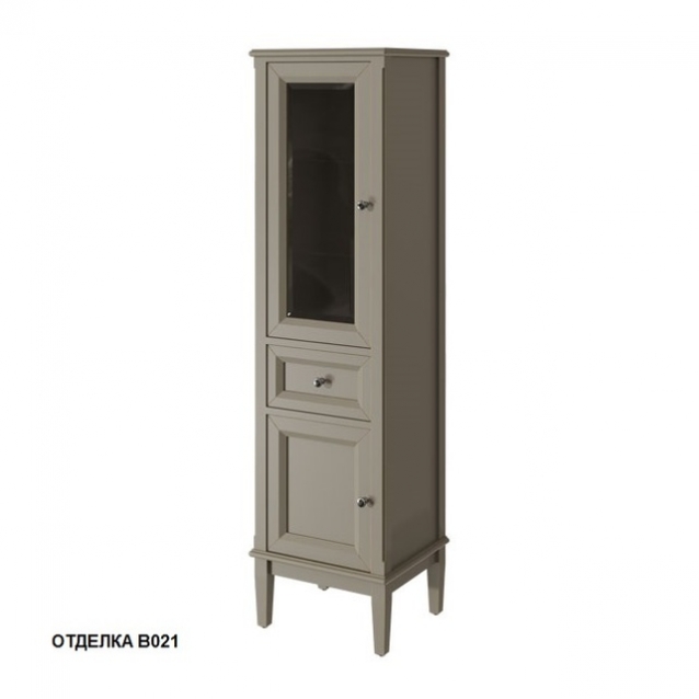 Шкаф-пенал JARDIN правый/левый выпускается в отделках из Реестра отделок мебели CLASSIC. Один выдвижной ящик две стеклянные полки 4 мм. верхний фасад со стеклом