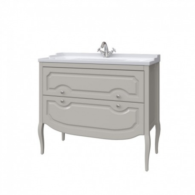 Напольная тумба с раковиной FIRENZE 100 см шириной производится под заказ в любых отделках "SOFTTOUCH" из реестра отделок CONCEPT. Оснащена двумя выдвижными ящиками. Фаянсовая раковина продается отдельно.