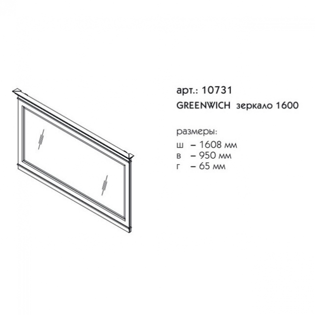 Зеркало в ванную комнату Greenwich 160 см производится только в отделках цветными эмалями без патинирования согласно реестру отделок. Зеркальный фарцет 25 мм.