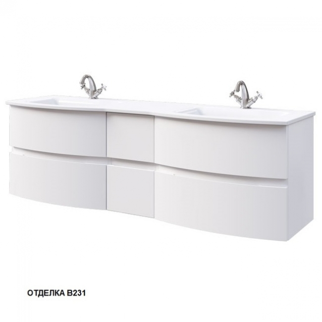 Данное решение значительно расширяет применимость коллекции в интерьерах любого размера и стиля. Составленный из модулей комплект сверху накрывается моноблочной Стекло-Керамической раковиной, изготовленной под конкретный заказ.