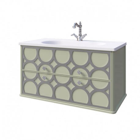 Тумба CAPRICE 90 два ящика производится только в отделках цветными эмалями без патинирования, двуцветие (круги) два выдвижных ящика раковина литьевой мрамор возможная комплектация раковина (стеклокерамика). Раковины приобретаются отдельно