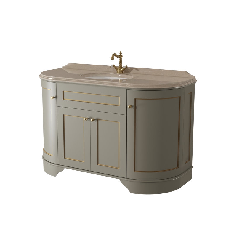 Тумба Reachmond 140 с раковиной и столешницей для ванной производится только в отделках цветными эмалями из реестра отделок. В тумбе 2 стеклянные полки.Раковины сделанные из фаянса врезные.Столешница из мрамора, кварца или агломерата различных цветов на Ваш выбор.