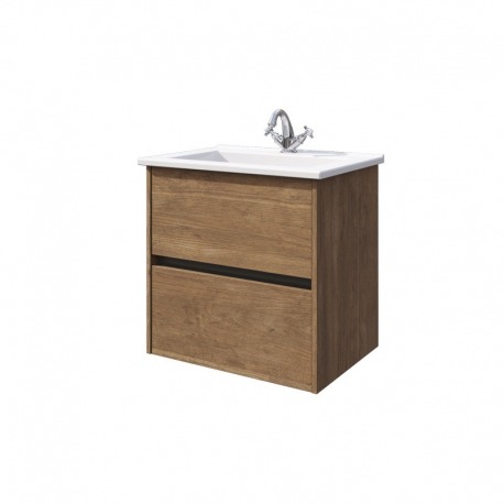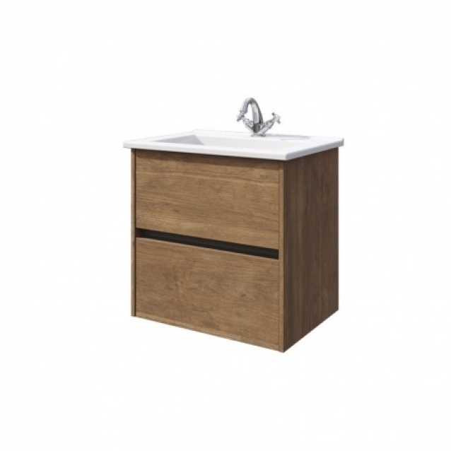 SEATTLE подвесная тумба 60 см выпускается в отделках: ЭКОШПОН – NATURA раковина Кировит (фаянс) 2 выдвижных ящика