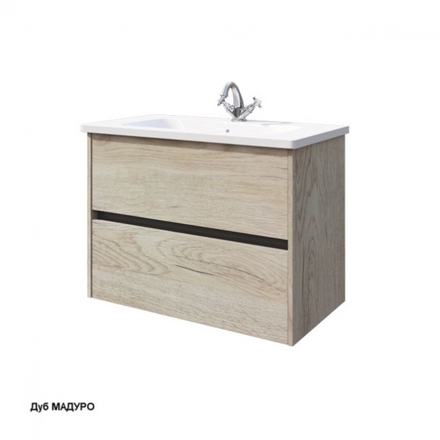 SEATTLE подвесная тумба 80 см выпускается в отделках: ЭКОШПОН – NATURA раковина Кировит (фаянс) 2 выдвижных ящика