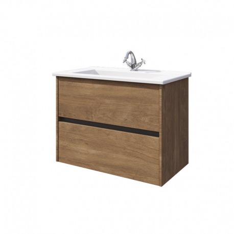 SEATTLE подвесная тумба 85 см выпускается в отделках: ЭКОШПОН – NATURA раковина Кировит (фаянс) 2 выдвижных ящика