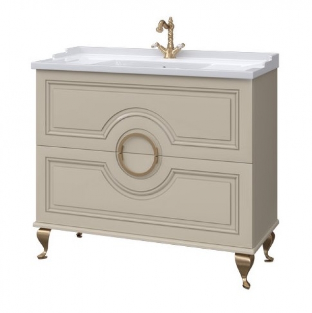VALLETTA тумба 100 (2 ящика) выпускается на склад в отделке арт. ТР-811 (Бланж). под заказ в отделках из Реестра отделок CONCEPT. раковина (фаянс) продается отдельно