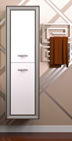 Пенал подвесной конструкции Opadiris Карат выполнен в белом глянцевом цвете и оформлен декоративным молдингом с серебряной патиной, который служит стилеобразующим элементом данной серии. Устойчивый к воздействию влаги, корпус изделия произведён из МДФ плиты и оснащён двумя распашными фасадами с отделениями, в которых помещены полки. Образ завершает хромированная фурнитура с камнем, имеющим огранку кристалла. Возможно исполнение в левостороннем и правостороннем варианте.