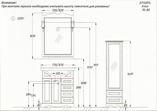 Модель «Клио 75» выполнена в классическом стиле и выпускается из массива бука в цветах ОРЕХ АНТИКВАРНЫЙ, БЕЛЫЙ МАТОВЫЙ И СЛОНОВАЯ КОСТЬ. Удобная, красивая, функциональная и защищенная от воздействия влаги эта модель изумительно впишется в ваш интерьер.