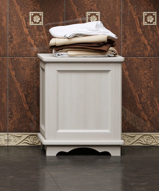 Напольная тумба изготовлена из массива бука, удобна в использовании. Небольшие размеры тумбы позволят установить её даже в небольшую ванную комнату. Тумба может быть исполнена в белом цвете или в цвете нагал.