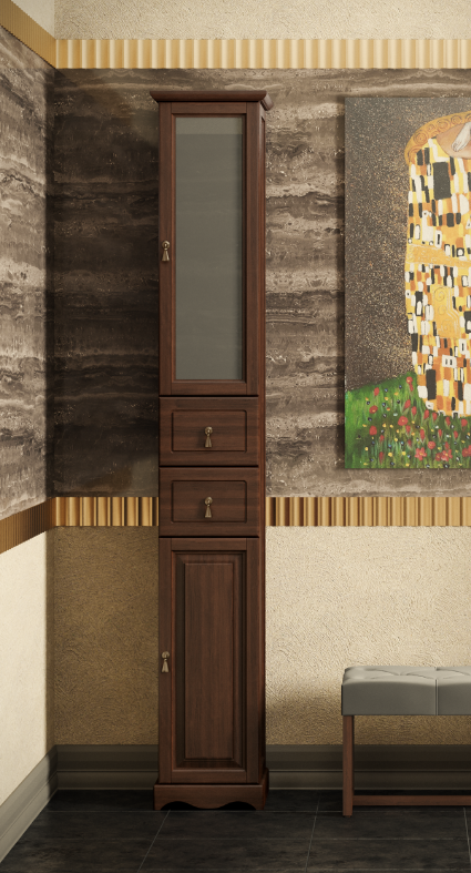 Компактный пенал Opadiris Риспекто 30 орех антикварный, является крайне необходимым решением, когда главными задачами стоит сохранение единого стиля и площади. Длинный и узкий, он может легко поместиться в нише, сделав данную зону рациональной и удобной для использования. Функциональная часть пенала имеет два выдвижных ящика для мелочей и два распашных фасада с полками, дизайн выдержан в общей концепции с остальными предметами.