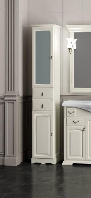 Компактный и узкий пенал Opadiris Риспекто 30 слоновая кость, позволит создать в интерьере ванной комнаты цельный образ, решив проблему дополнительного места для хранения ванных принадлежностей. Для этого производитель предусмотрел четыре отделения – две секции с распашными фасадами и два выдвижных ящика. Рамные фасады пенала оформлены объёмной филёнкой, матовым стеклом и винтажными ручками в форме кисточек.