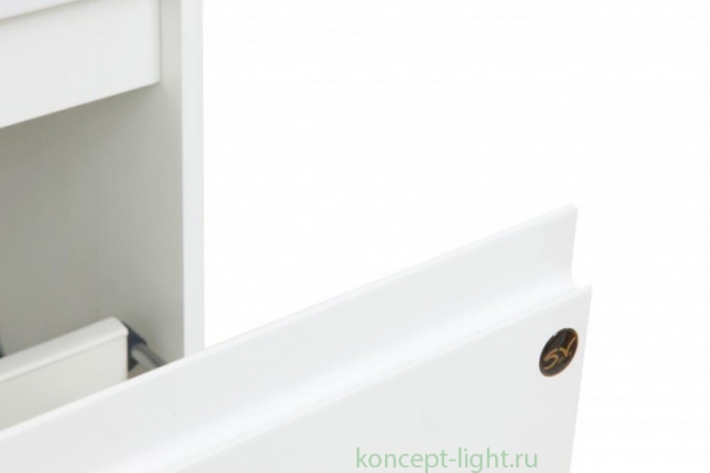 Имеет хорошую эргономику за счет глубины тумбы и скрытого ящика-органайзера, в котором разделение пространства для ванных принадлежностей и аксессуаров.