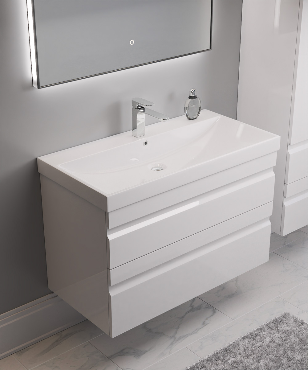 Имеет хорошую эргономичность за счет разделения внутреннего подсифонного пространства верхнего ящика и увеличенной глубины нижнего, который вмещает средства гигиены и объемные аксессуары для ванной комнаты.