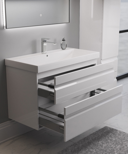 В тумбе используются 2 ящика с функцией полного выдвижения и плавного бесшумного закрывания.